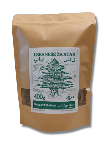 The traditional Lebanese Za'atar is based on a mixture of thyme, roasted sesame seeds, sumac and salt. It has an earthy and herbal flavor, with a hint of sour. Lebanese Za'atar is perfect for making Manakeesh.